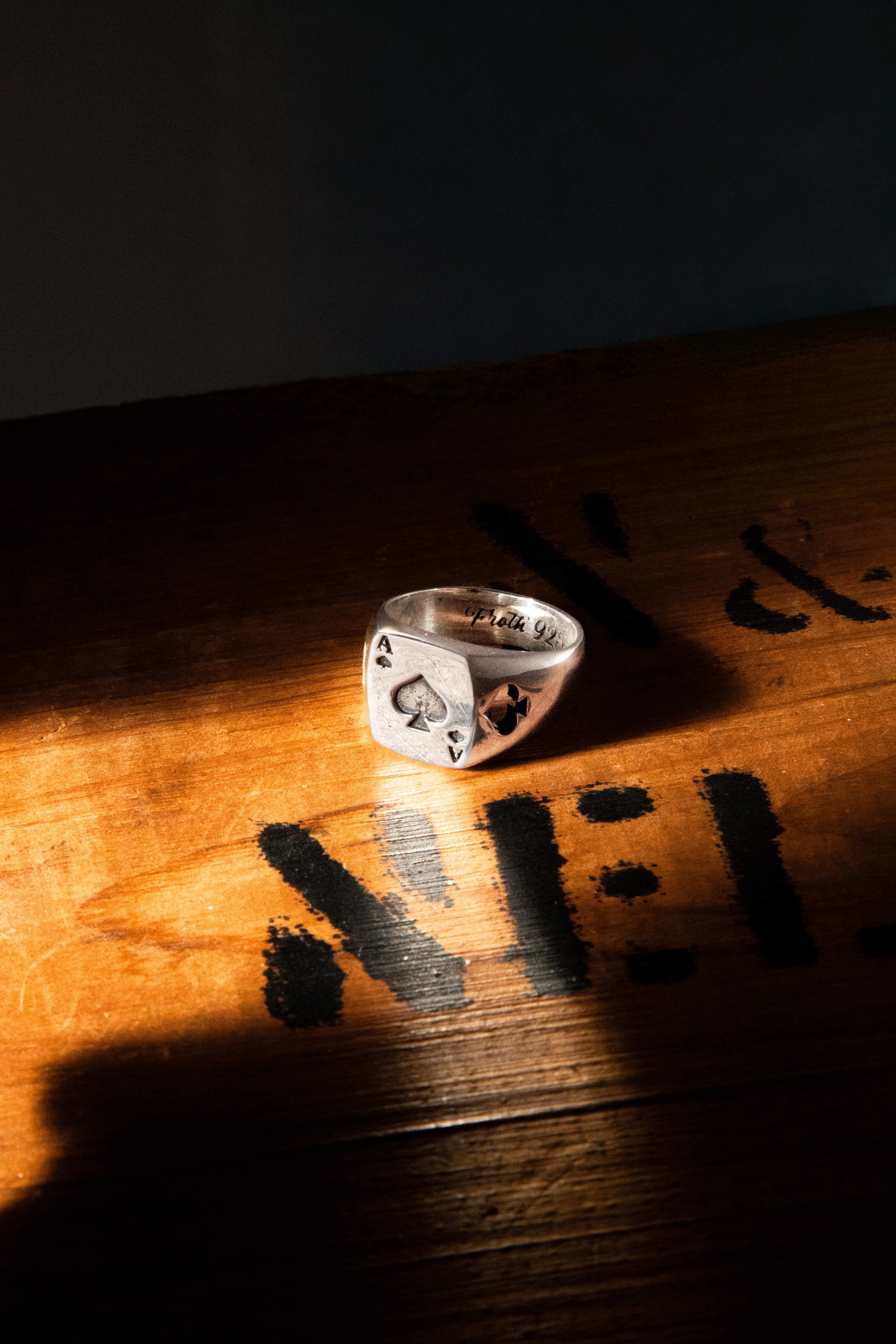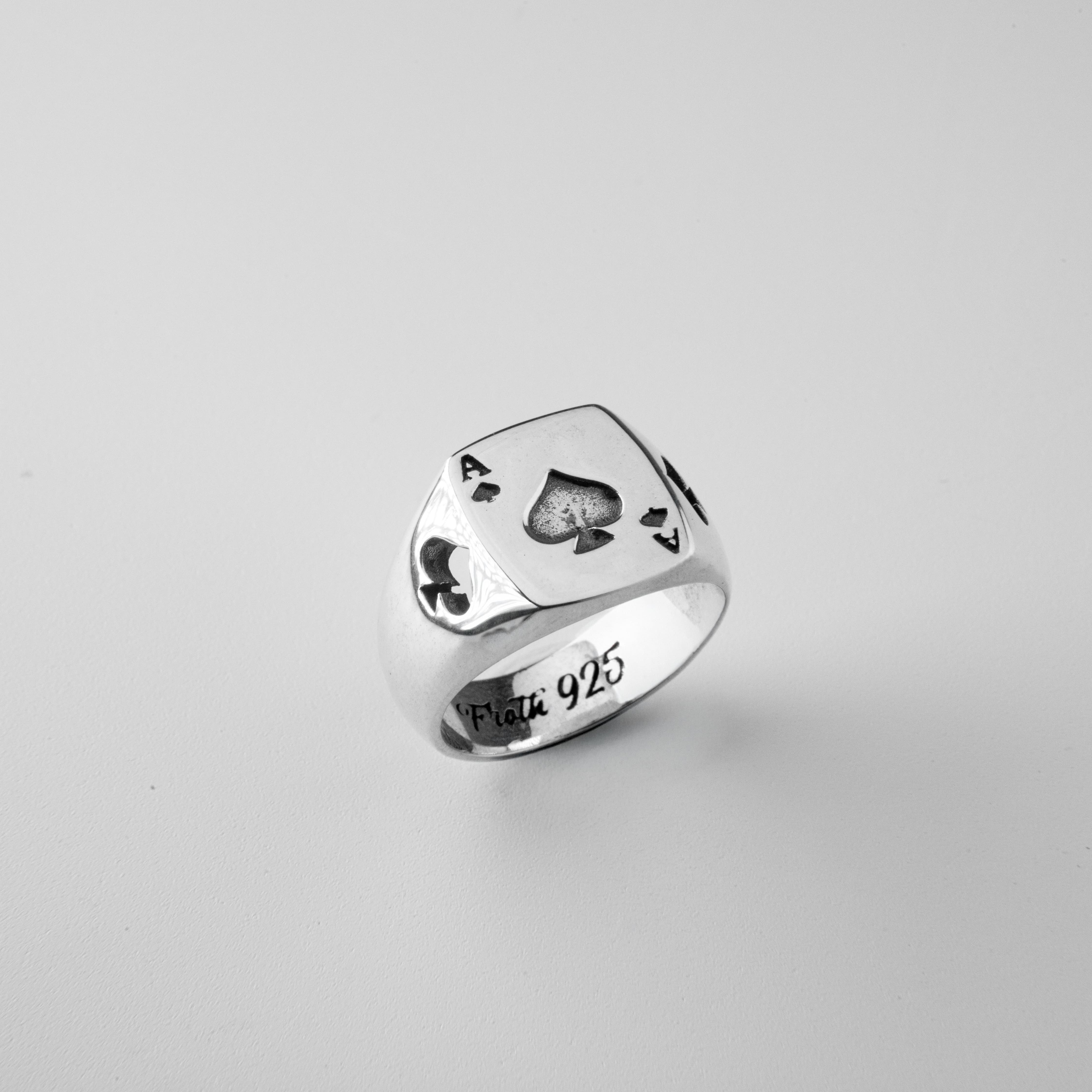 Bold, classic, and unmistakable. The Ace of Spades Signet Ring is crafted from solid 925 sterling silver, featuring a clean, engraved spade motif on a traditional signet face.